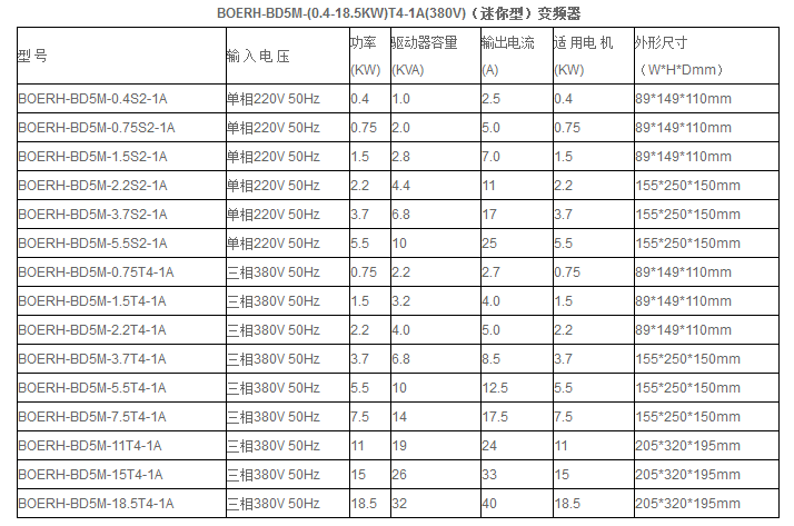 BOERH-BD5M-(0.4~5.5KW)S2-1A(220V)迷你變頻器
